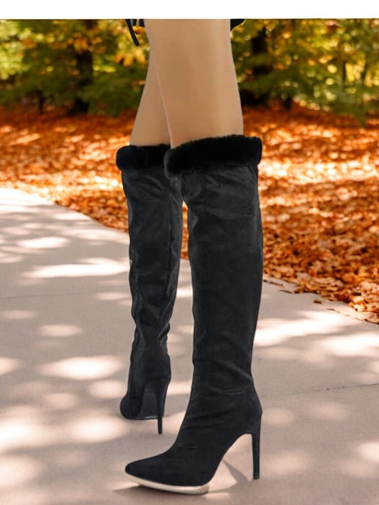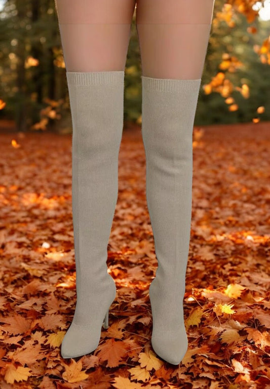 Gold Rhinestone Over-The-Knee Heeled Boots