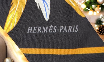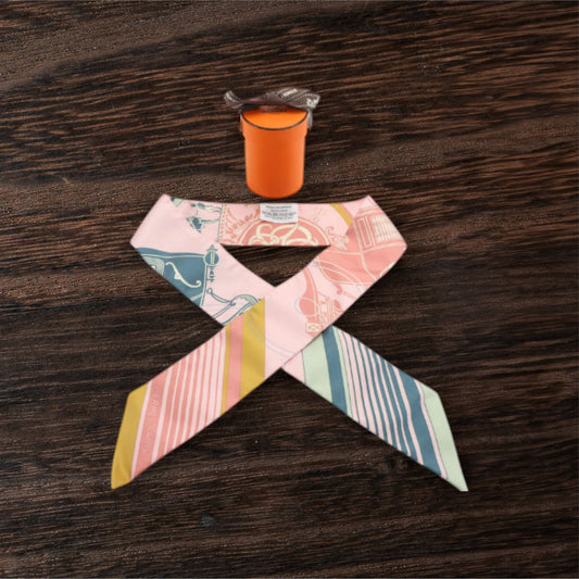 Hermès "Ex-Libris" Twilly in Rose, Pale Green and Ochre Silk
