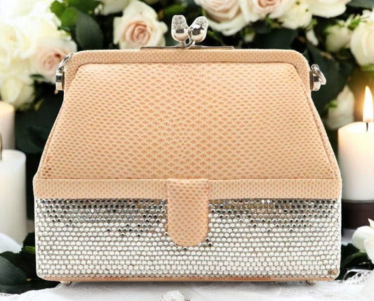 Judith Leiber Karung Skin and Swarovski Crystal Two-tier Evening bag Minaudiere with Accessories