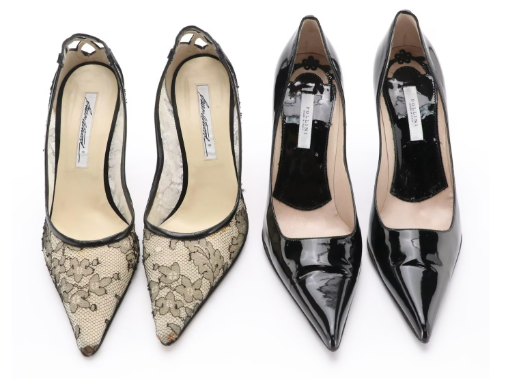 Brian Atwood Satin/Lace and Pollini Patent Leather Point Toe Pumps