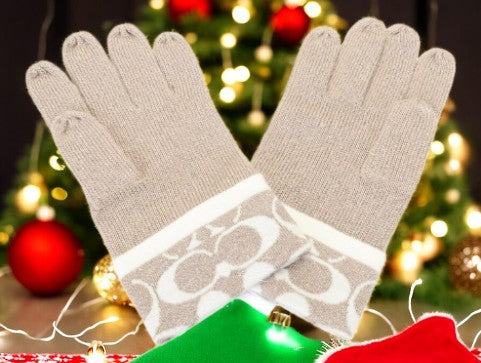Coach Signature Metallic Knit Gloves and Matching Scarf with Boxed Star Wristlet