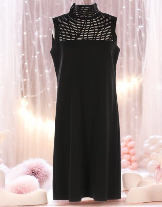 Lafayette 148 Laser-Cut Black Stretch Polyamide Mock Neck Dress
