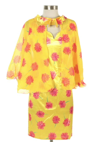 Vera Mont of France Floral Print Two-Piece Sleeveless Dress and Overlay Top Set