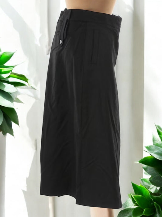 Vintage Stella McCartney Cropped Pleated Extra Wide-Leg Trousers in Shiny Black Wool