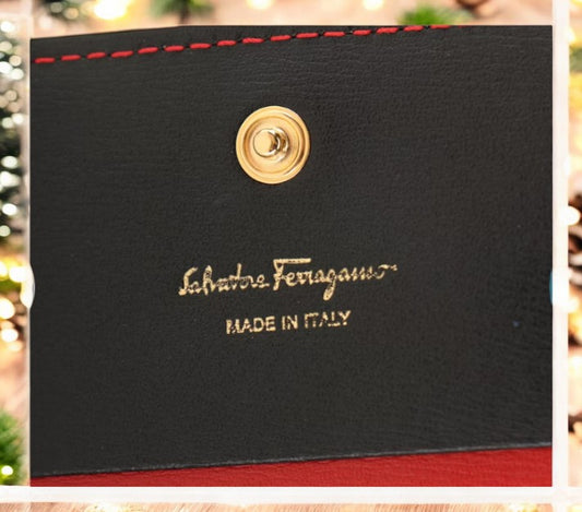 Salvatore Ferragamo Embossed Black Leather Compact Wallet