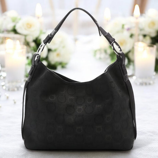 Salvatore Ferragamo Gancini Canvas Shoulder Bag