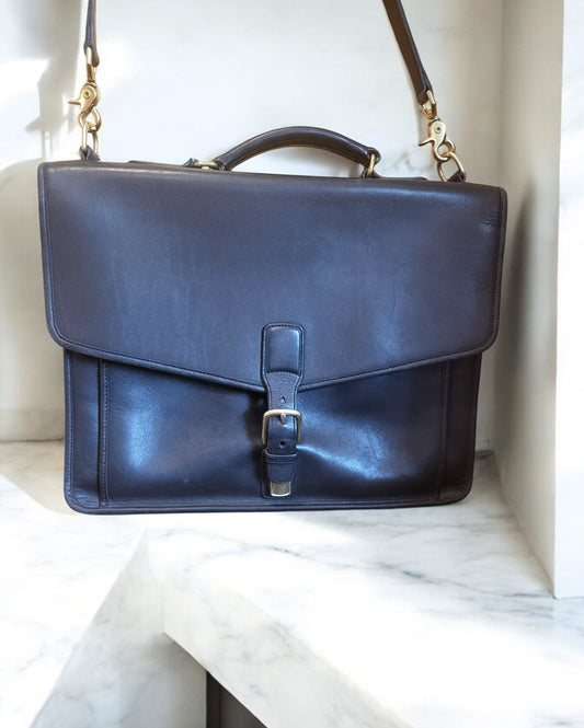 Vintage Coach Buckle Black Leather Briefcase Bag W/strap
