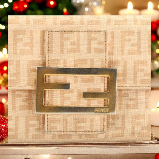 Fendi Beige Zucchino Coated Canvas Forever Flap Continental Wallet