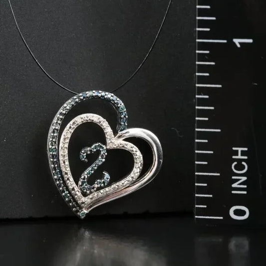 Sterling Diamond Heart Pendant with (Origin Undetermined) Fancy Blue