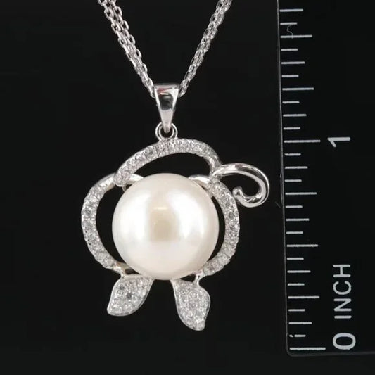 Vintage Beautiful - Sterling Pearl and CZ Pendant Necklace