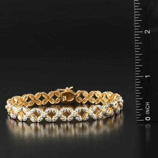 Vintage Beautiful - Sterling Diamond Floral Link Bracelet