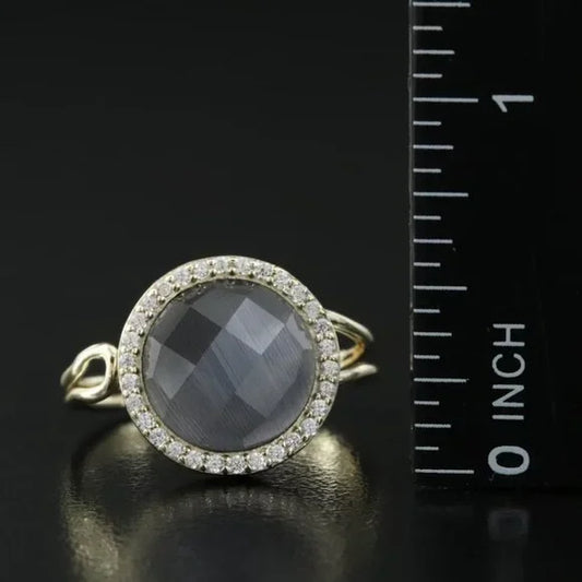 Vintage Beautiful - Sterling Cat's Eye and CZ Ring-75169