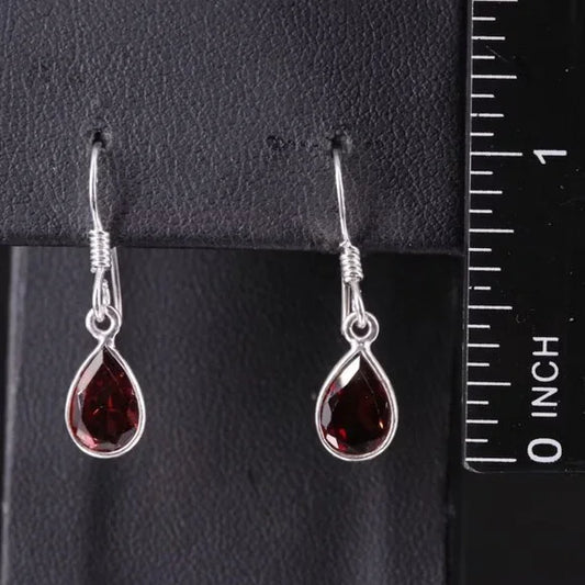 Sterling Garnet Teardrop Dangle Earrings-87192,87755