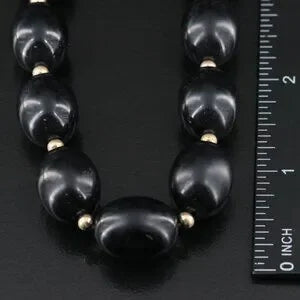Vintage - Resin Black Beaded Necklace and Bracelet with Gold-Filled Clasps