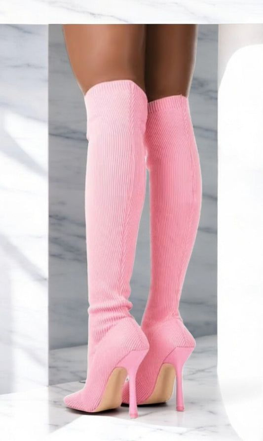 Gold Rhinestone Over-The-Knee Heeled Boots