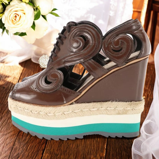 Vintage - Prada Wedge Block Heel Brown Leather