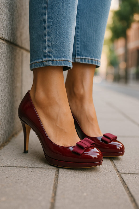 Salvatore Ferragamo Vara Bow Pumps in Burgundy Patent Leather