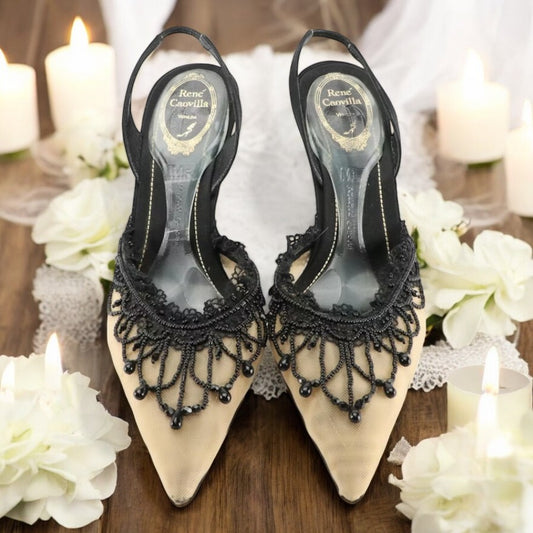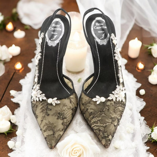 Rene Caovilla Black Mesh Pumps